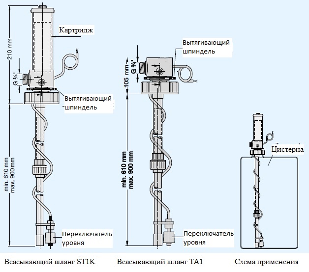 Всасывающие трубки (рукава, шланги) с фильтрами поглотителями паров химических веществ (адсорберами) для газосодержащих жидкостей (ST1K) Всасывающие трубки (рукава, шланги) с фильтрами поглотителями паров химических веществ (адсорберами) для жидкостей не содержащих газ (TA1) : • Регулируемая длина. • Возможно максимум 2 переключателя уровня (из ПВХ или тефлон PTFE). • Реле контроля уровня можно использовать как закрывающий или открывающий клапан, просто перевернув поплавок. • Всасывающие трубки (рукава, шланги) простые в обращении – они просто вставляются в автоцистерну и плотно прикручиваются. • Соединитель обратного потока: G 1/4 ” • Специальная длина по запросу. • Всасывающий патрубок с накидной гайкой + доступна вставка D 16 |
