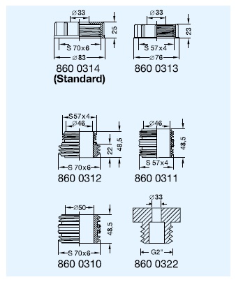 По заказу также фланцы по стандарту ANSI. По запросу другие присоединения, например, зажимы по ISO. |